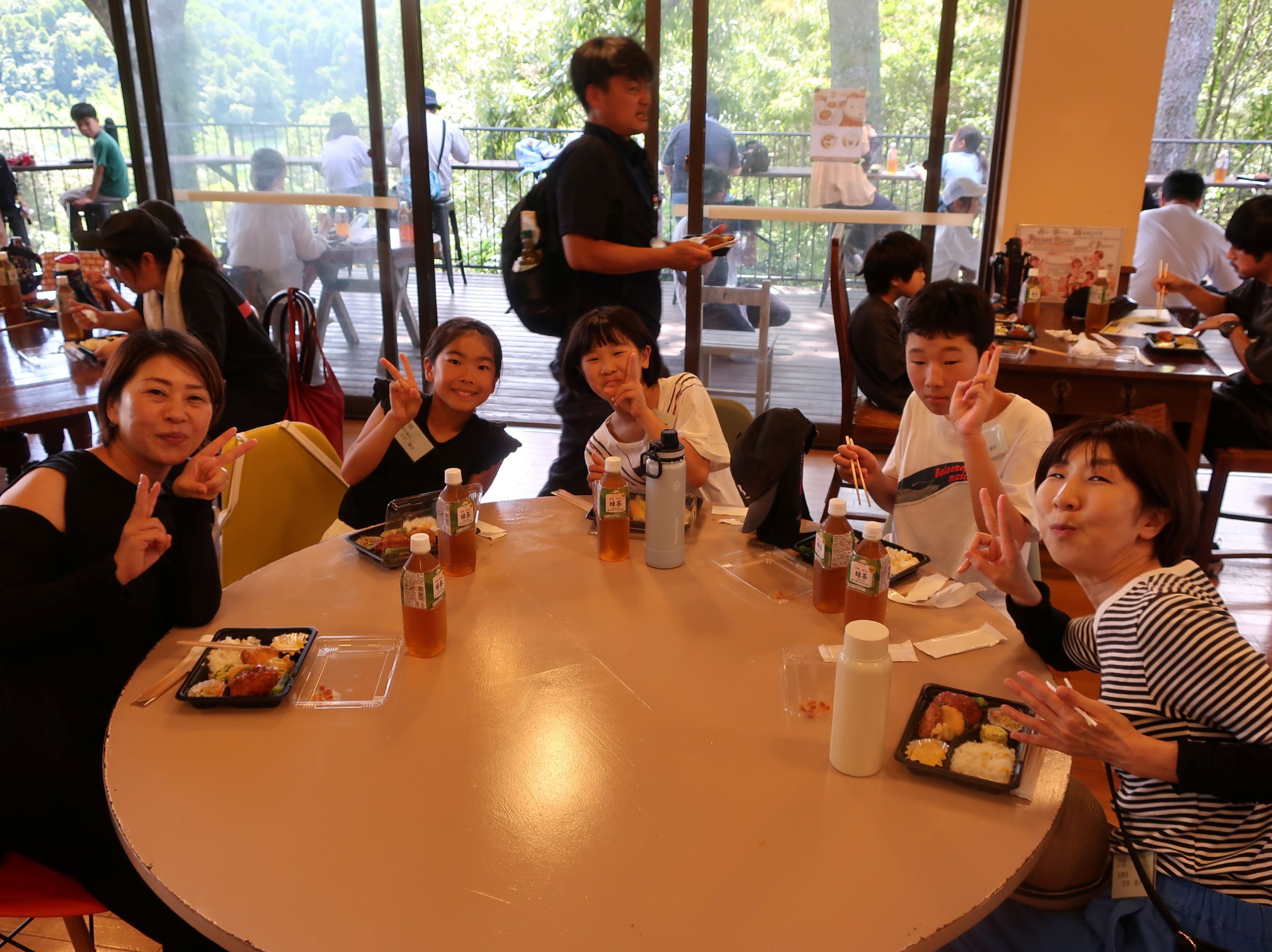 昼食は緑に囲まれたレストランでお弁当を食べていただきました。自然の中でスタッフも一緒に楽しく食事ができました。