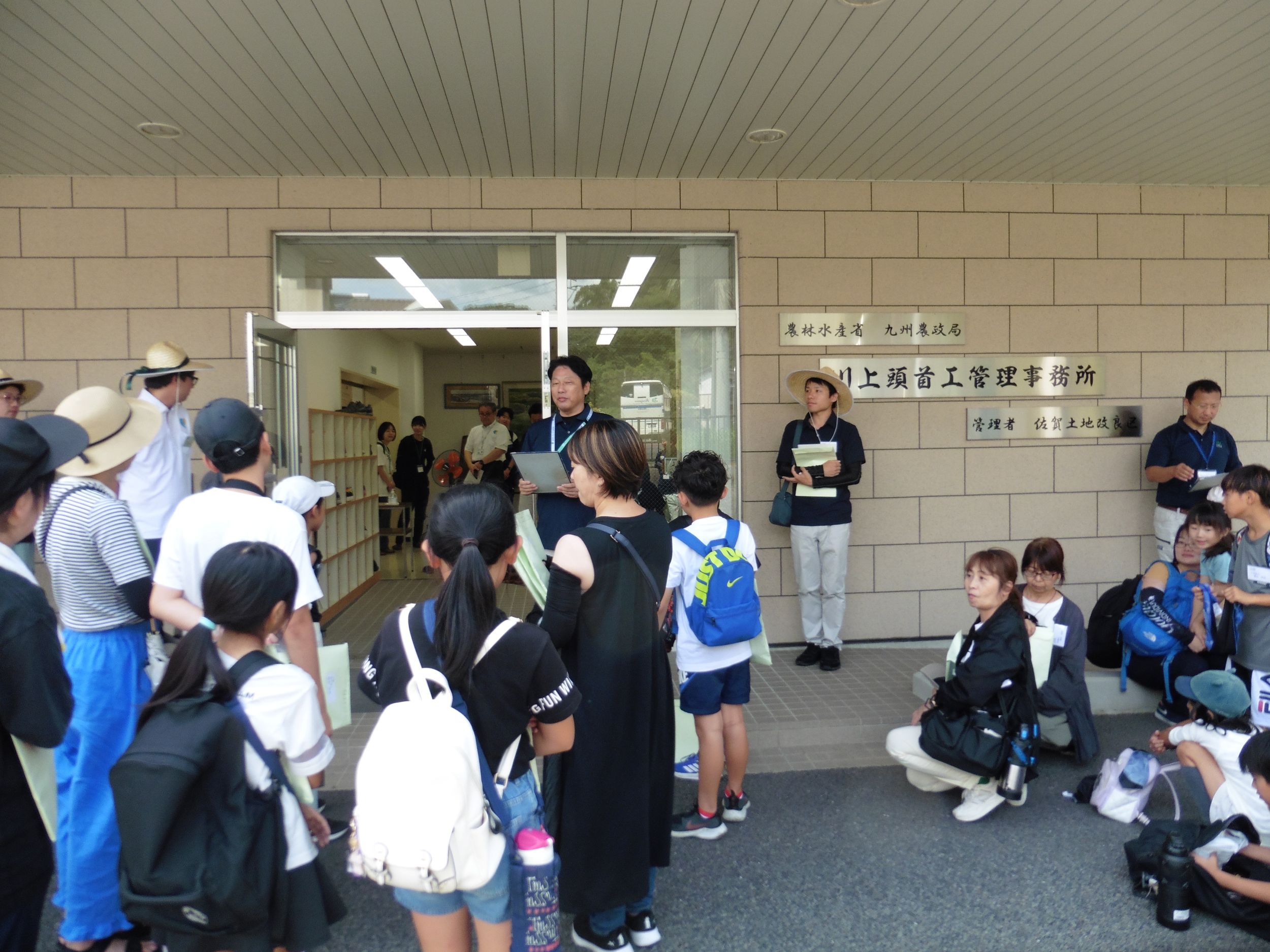 川上頭首工では、各施設の役割や佐賀平野約1万ヘクタールの農地に農業用水を配水する仕組みを学んでもらい、資料室では頭首工ができるまでの歴史についても学びました。