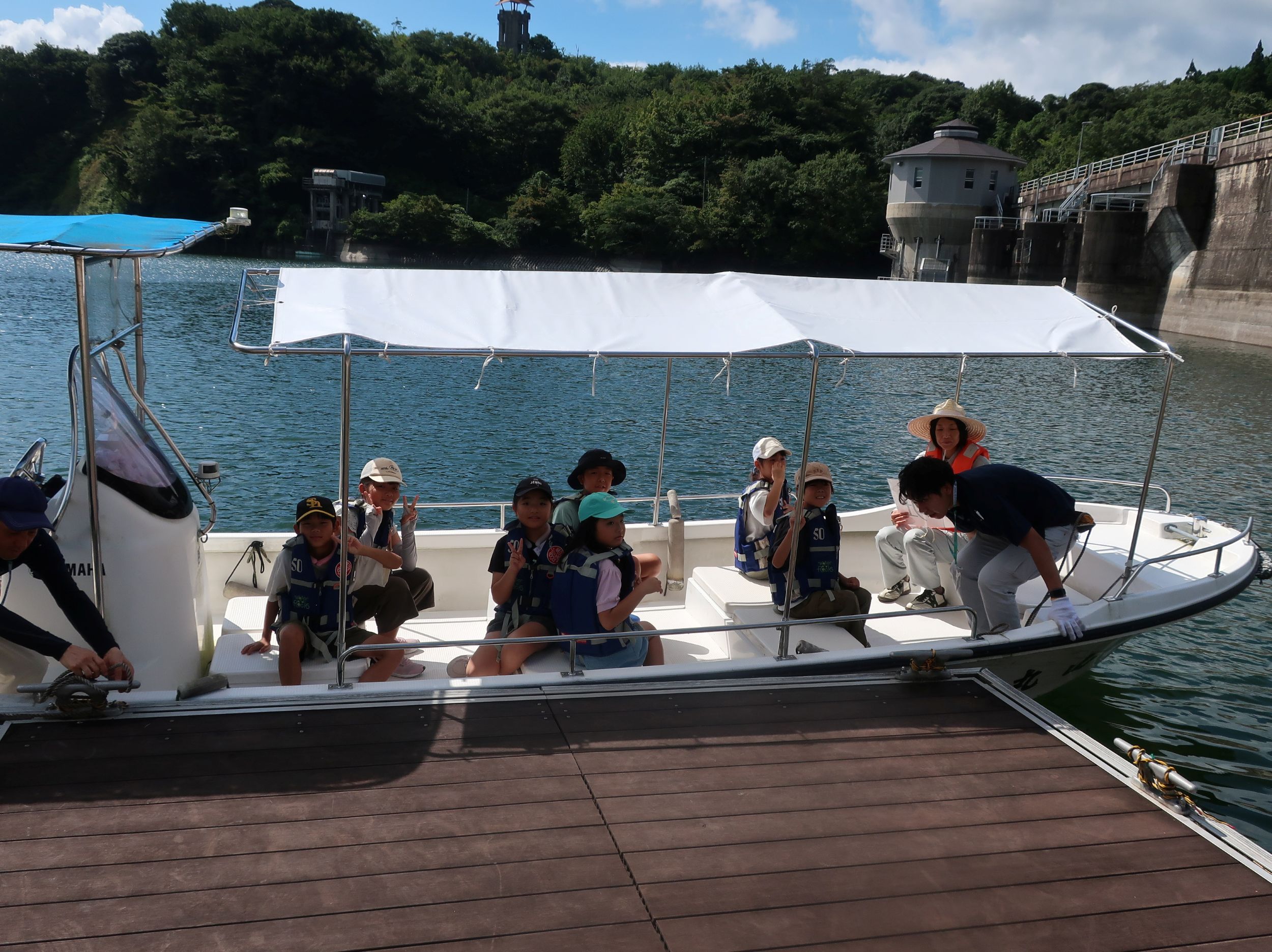 北山ダムの巡視船「北山丸」に乗り込んで危険箇所の確認をしながら船上から見えるダムの風景を楽しみました。
