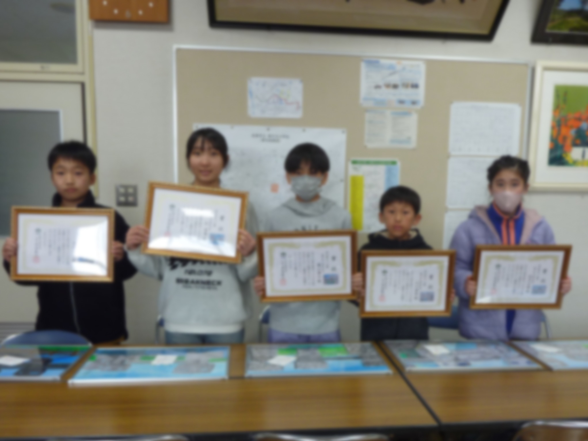 その中で特に優秀な5作品について「水土里ネット賞」として表彰式を行いました。優秀な5作品については3月10日から3月23日まで春日公民館ホールに展示し、その後は川上頭首工の資料室で展示しますので、ぜひご覧いただけたらと思います。