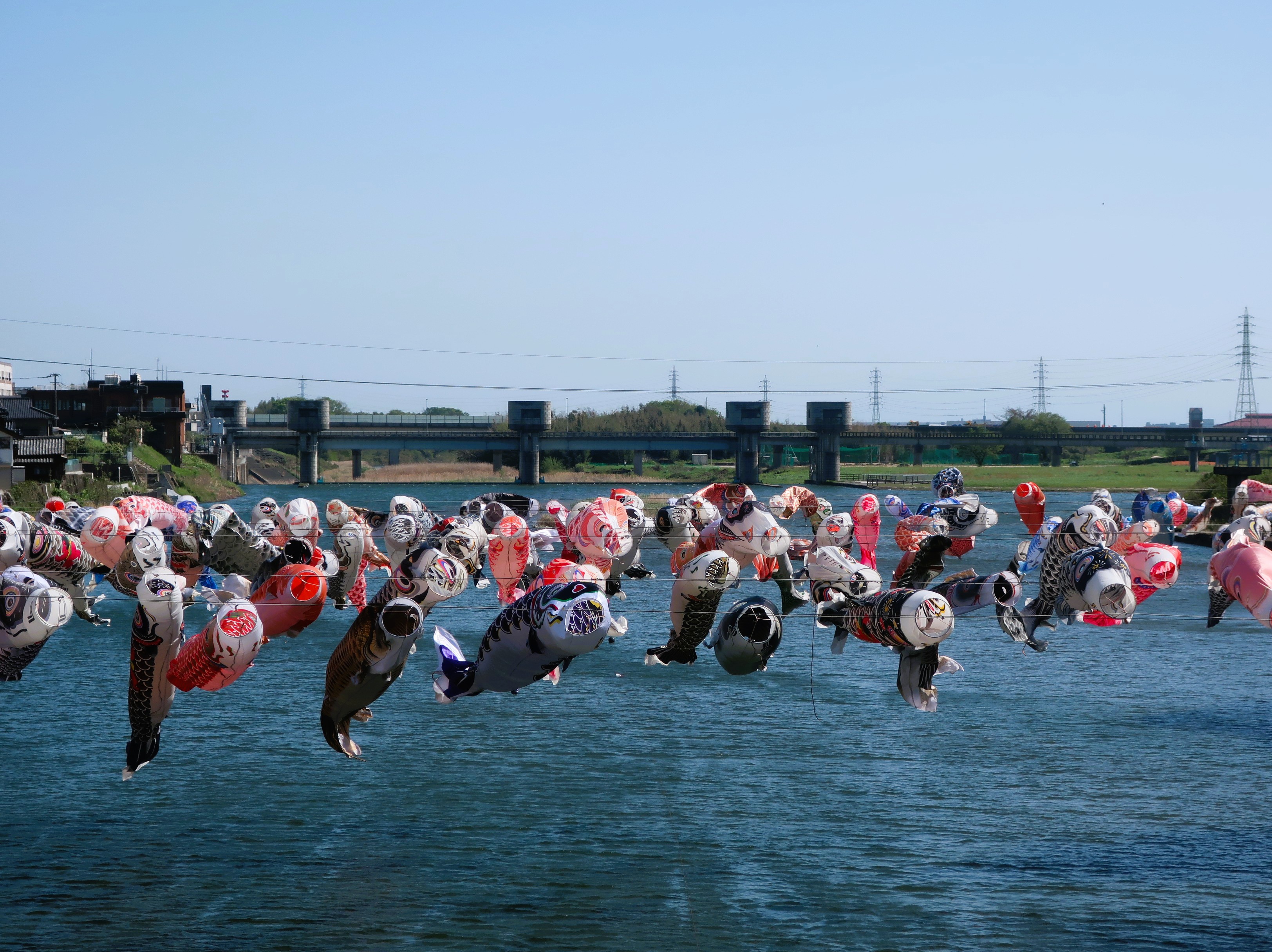川上頭首工上流では鯉のぼりの大群が気持ちよさそうに川上峡の空を泳いでいます。